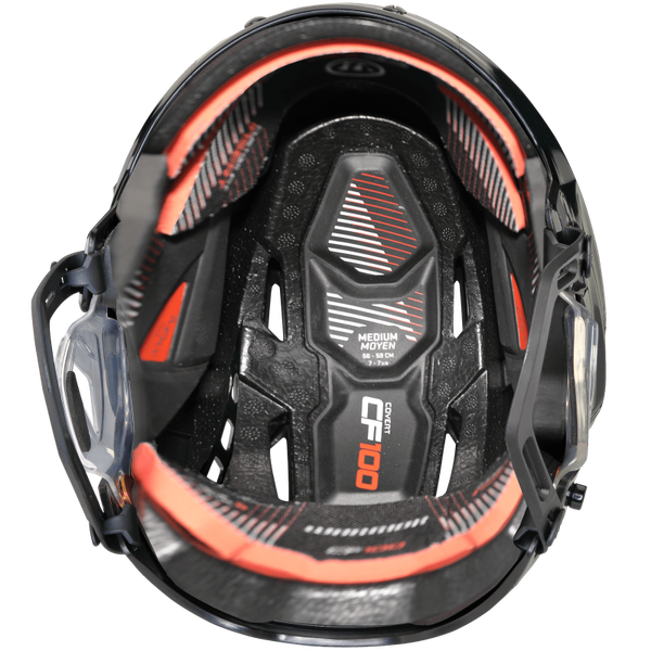 CUSTOM FIT INSERTS | Heat moldable inserts in the front and back of the helmet allow for a custom fit for each individual player, providing the perfect fit no matter the head shape. Dialing in the perfect fit is not just about comfort, it is also Step 1 in protection. The CF 100 is the ultimate combination of fit, comfort and protection.