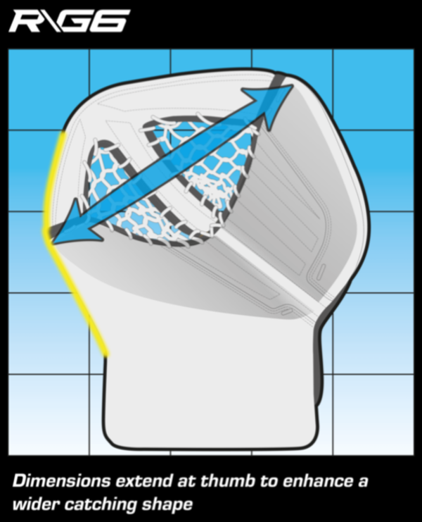 - Dimensions extend at the thumb to enhance a wider catching shape